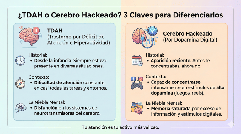 ¿Crees que tienes TDAH o es "Brain Rot" digital? Descubre cómo la dopamina está hackeando tu atención y los 3 pasos de neurociencia para recuperar tu enfoque.
